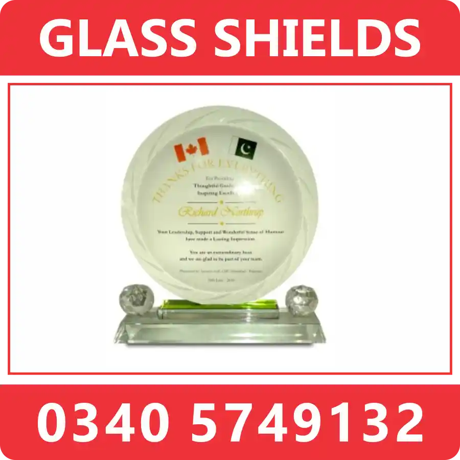 Crystal Shield Making and Printing Service Online By Printing Press Islamabad. Order Now Online For Glass Shields Making With Home Delivery Service By Bikea & TCS, Delivery Charges is 400 Per KG For All Over Pakistan. Online Order For Crystal Shield Awards Accepted From All Over Pakistan. Free 24hr Support By Whatsapp and Email.